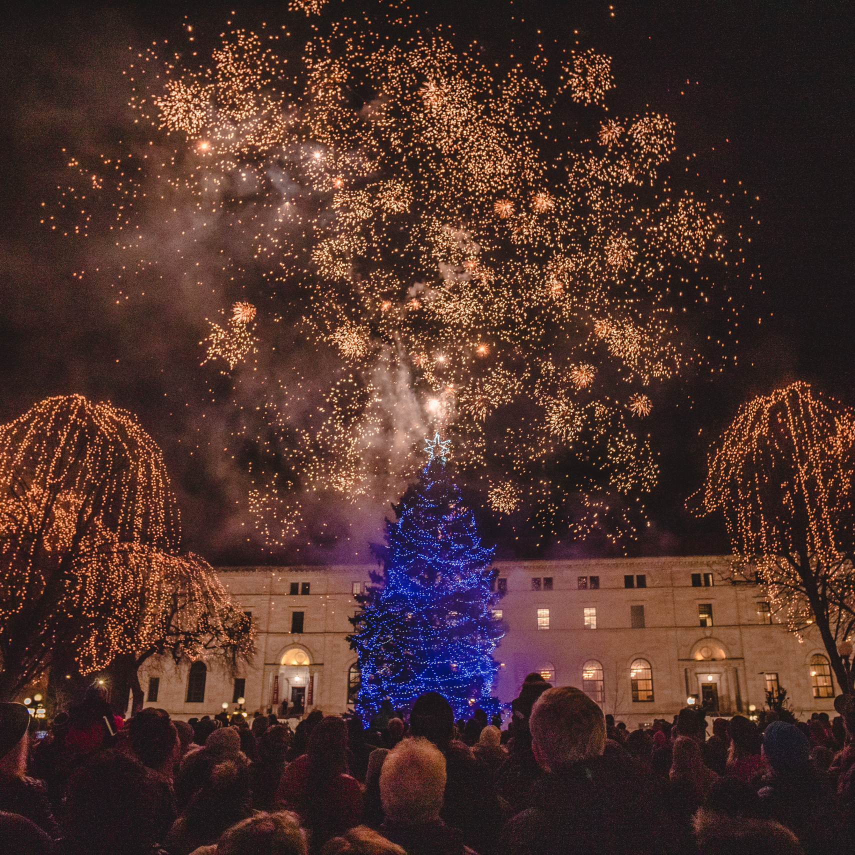 As New Year’s Eve approaches, Rice Park will host a family-friendly fireworks show at 8 p.m. on Wednesday, December 31, perfectly timed for fans leaving the USA vs. Sweden game or families seeking an early celebration.