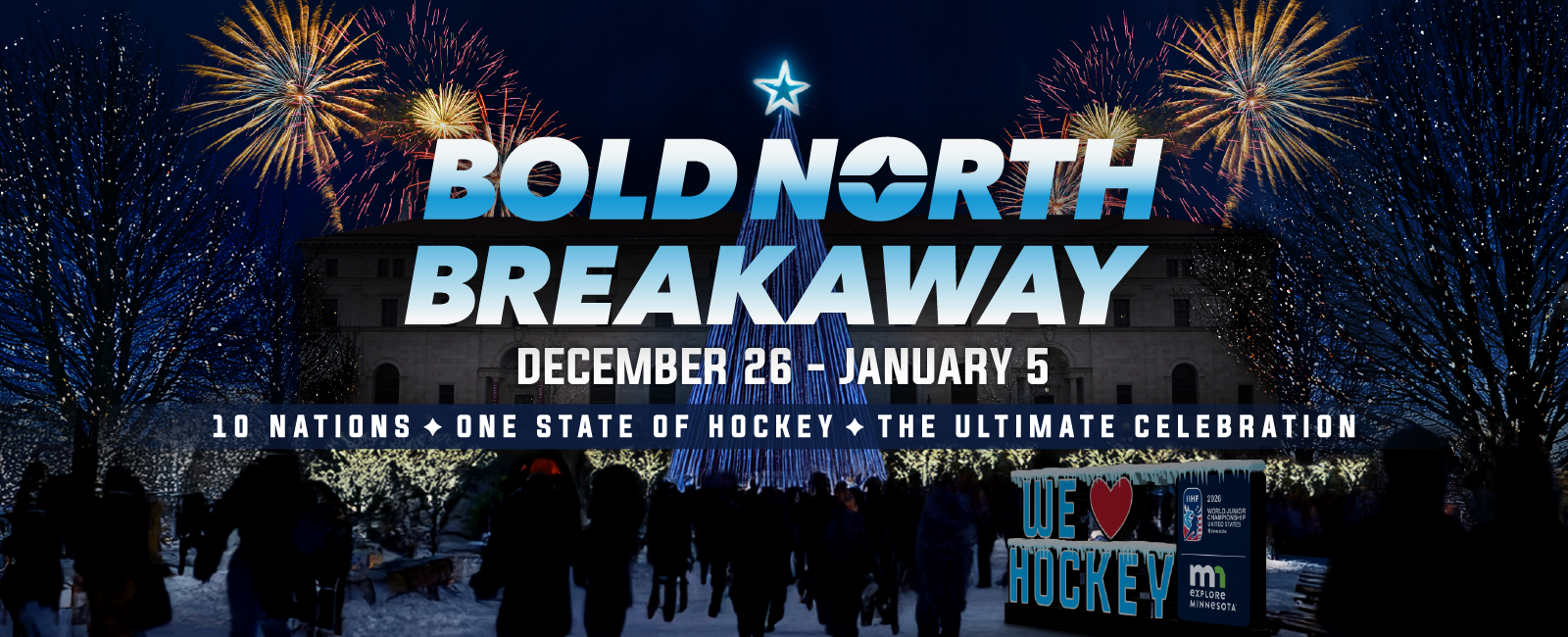 From outdoor winter fun in Rice Park to indoor excitement at Saint Paul RiverCentre, Bold North Breakaway is where hockey meets the holidays, a hockey holiday with free fun all tournament long.