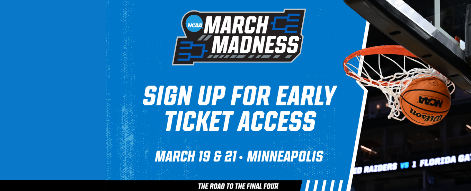 Experience the excitement in Minneapolis March 19 & 21, 2027 at Target Center! The University of Minnesota hosts the First and Second Rounds of the NCAA ® Division I Men’s Basketball Championship. Tickets will be available for NCAA subscribers in October– sign up here to hear about it first!